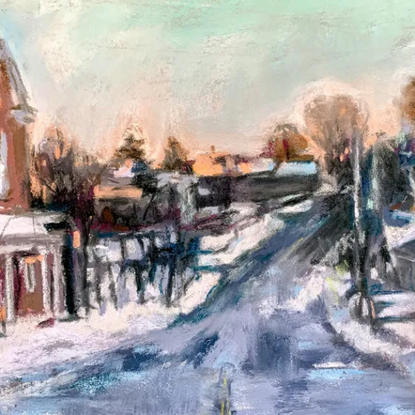Winter transforms familiar places, casting streets and buildings in a soft, reflective glow. Artists often highlight the quiet beauty of rural life in snow, from hushed roads to warm windows and buildings softened by frost. These scenes stir a sense of nostalgia and capture the comforting stillness that settles over towns as the colder months take hold.