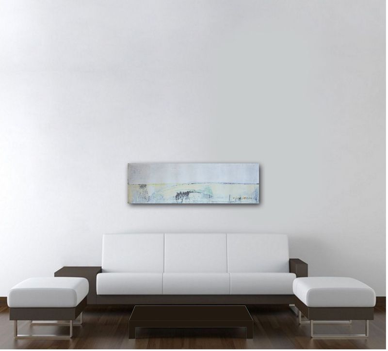Skyline series creates a sense of space and add a system of arranging your environment to create harmony. This high-quality one of a kind acrylic and oil pastel painting on canvas is 50X14". Signed dated and stamped on the front. painting ship rolled in a tube