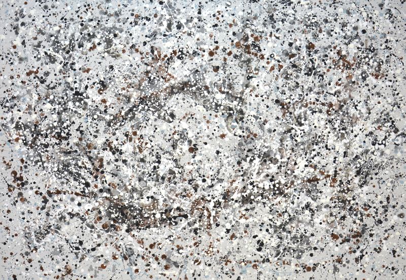 Fantasy. A modern, abstract, expressive, sophisticated painting that harmoniously fits into a modern interior. The work was created using the technique of dripping and splashing paint onto canvas. On a light gray background - gray and light gray, white drops, which were observed in nature. Quality materials were used. Acrylic painting on canvas. It is varnished. The artist's signature, the sides are painted white. The suspension is ready. Certificate of Authenticity.