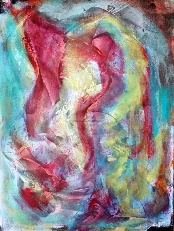 As an eclectic artist with wide-ranging interests, approaches, techniques and tools, Hunter's work can be a challenge to classify. "Spontaneous Combustion" is highly gestural. Colorful. Playful. And intriguing. A perfect example of his Potpourri Collection. It is painted with acrylic on a 40 x 30 x 1.5 inch gallery-wrapped canvas, edge painted white and ready to hang.