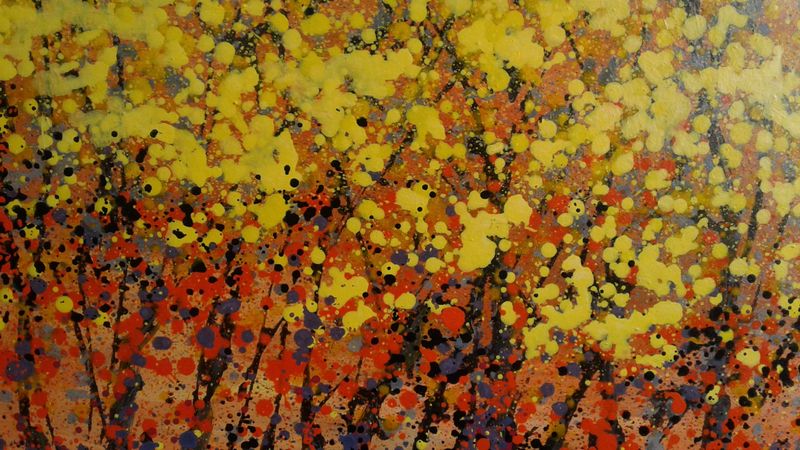In the autumn of Hanoi, walking around the streets again, visitors feel extremely excited when suddenly passing a few streets with fallen yellow leaves. I thought this beautiful image only appeared in countries like Germany, the Netherlands, the UK, or South Korea ... but in fact, the image of yellow leaves falling in autumn in Hanoi is also very wonderful. I paint autumn in Hanoi Vietnam is the most beautiful season of the year when the leaves turn yellow in the streets. The work is painted by dripping multiple layers of color overlapping, measuring 100cm x 120cm. I invite you to view and enjoy my work. thank you