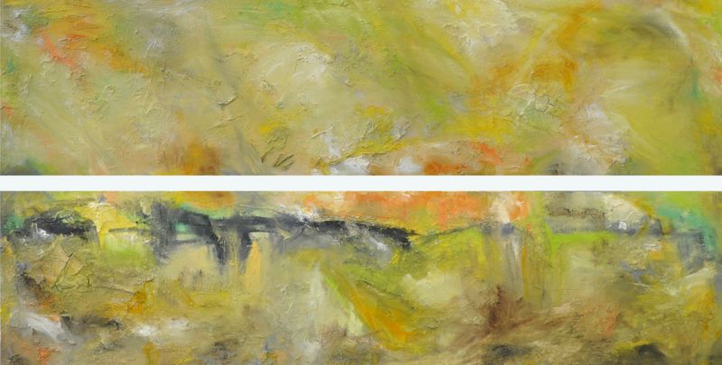 Poetic Art Statement: Equinox - Illusion of Time.60" x 30" Eco-Friendly Heavy Textured Oil Paintings - {2) 60" x 15" Gallery Wrap Canvases. Equinox by Michele Morata is a One-of-a-Kind Abstract Impressionistic / Expressionistic Landscape using only Organic Art Mediums healthy for our homes, offices, and earth. Eco-Friendly Crushed Stone from Italy with handmade international recyclable mediums are layered under the Oil. {2} 1.5" thick museum wrap stretched heavy-duty canvases with black painted edges. Water-based Oils with no added chemicals are layered over the textures. Eco-friendly Archival Matte Glaze invented by Michele Morata completes the work. My original paintings are featured in fine art galleries, private and corporate art collections, as well as movie sets, TV shows, commercials, and book covers. Thank you for supporting the collective dream of all original artists, past, present, and future.